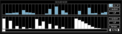 Sequencer section contain the velocity/gate sequencer and also 3 others sequencers to control the "attack" of the exciter, the "decay" of resonances, and the "pitch".